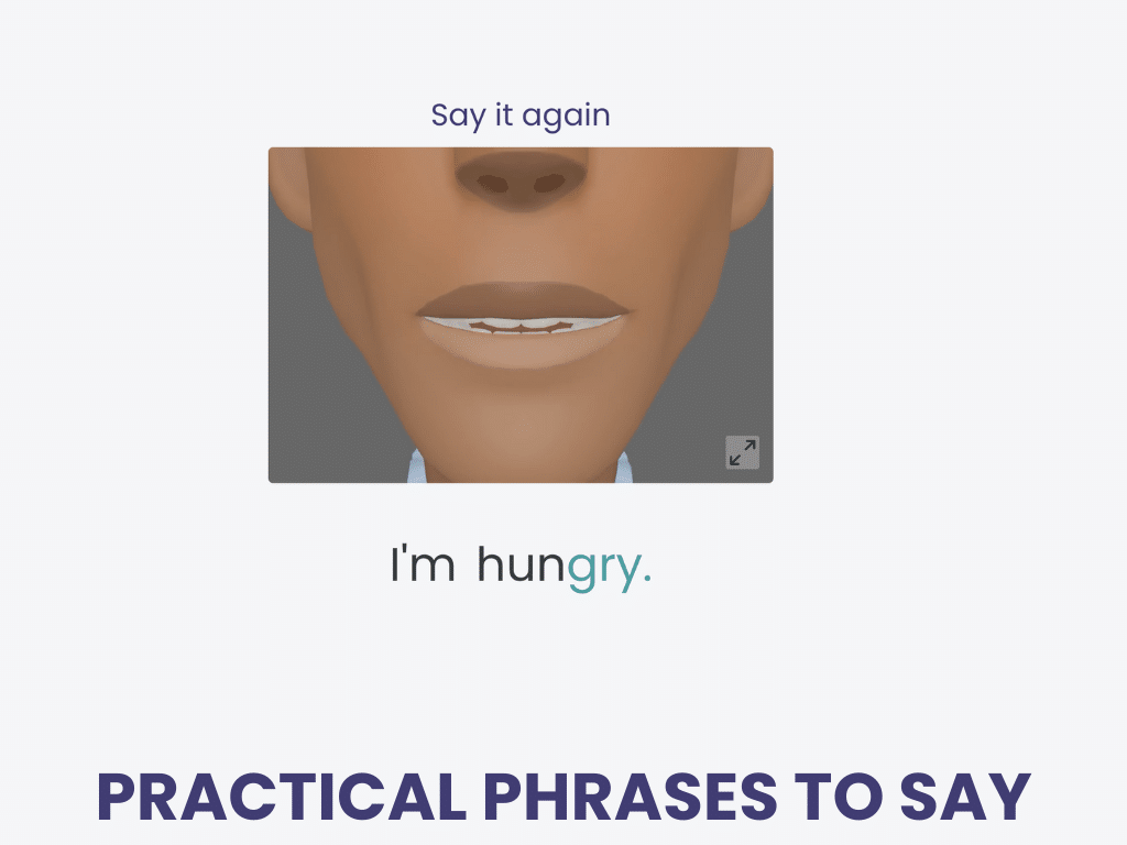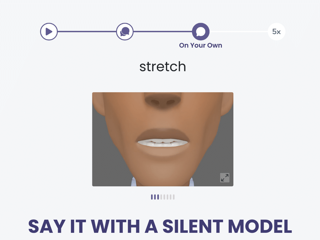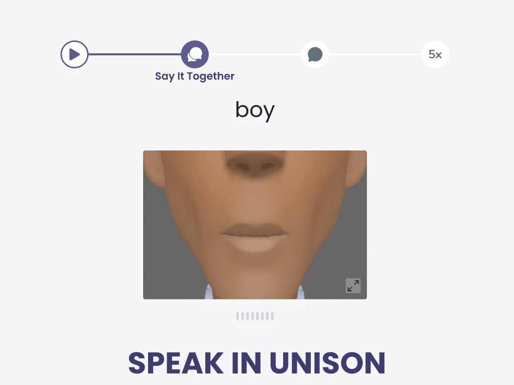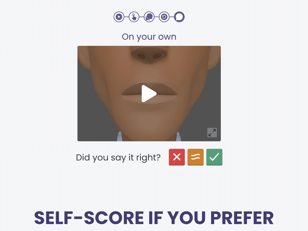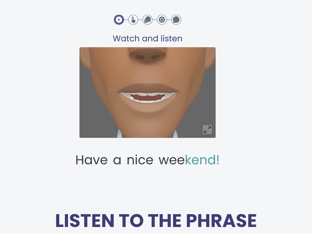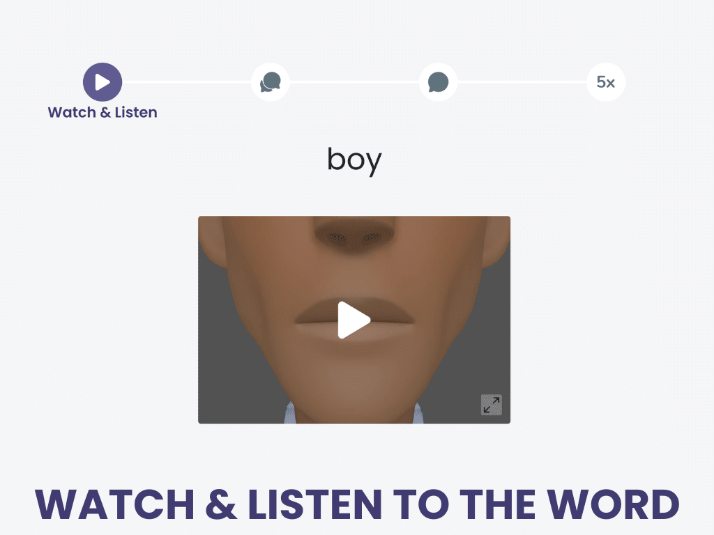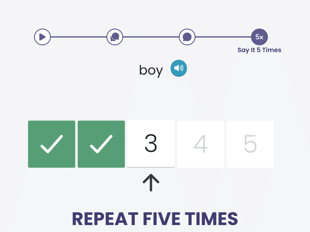 First, watch and listen. Then speak along. Say it on your own, then say it 5 more times.