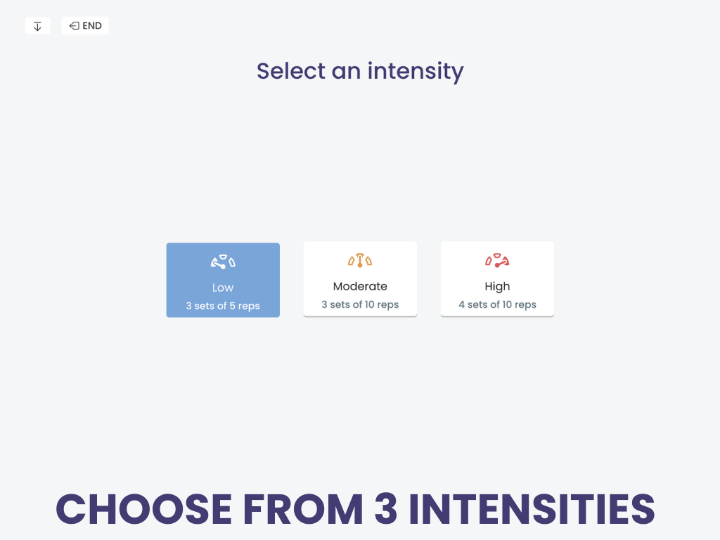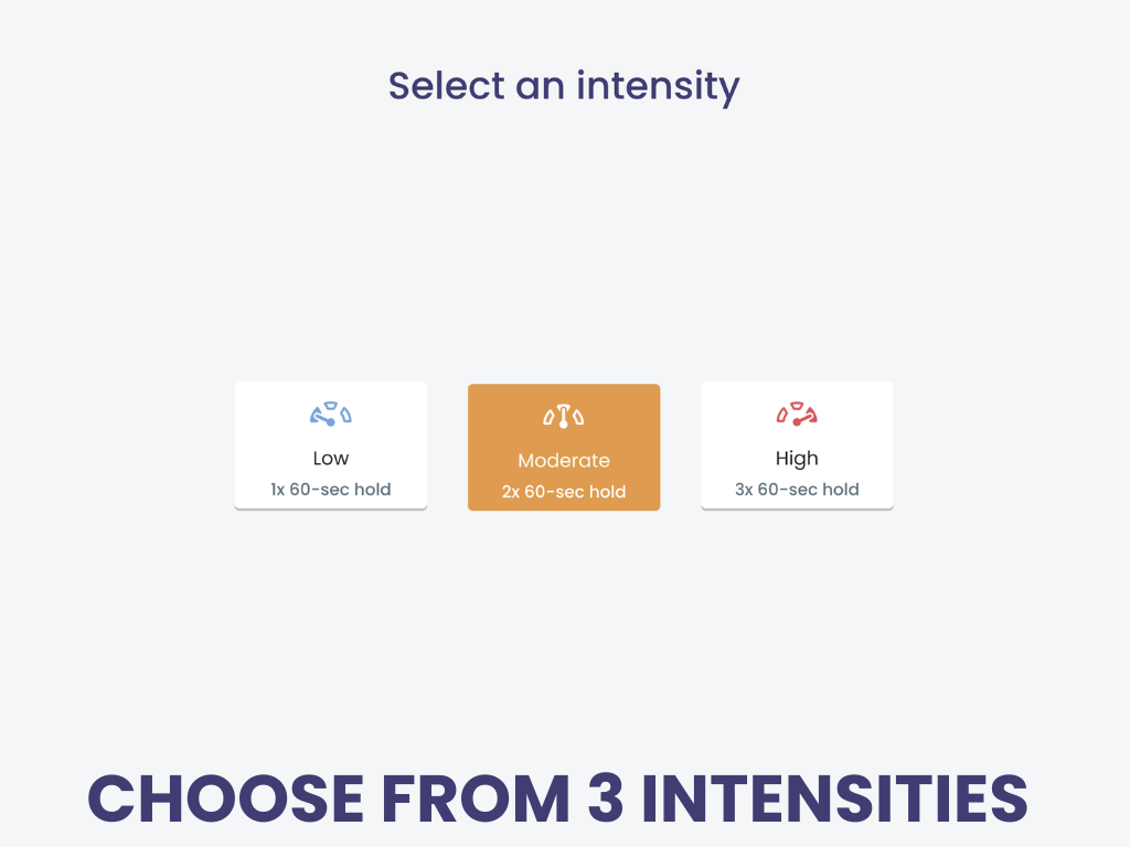 Long Hold guides patients through a 1-minute compression of a ball against the chest for isometric CTAR, while Quick Press counts out thirty 1-second compressions for isokinetic CTAR.
