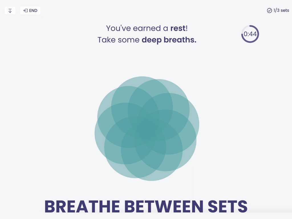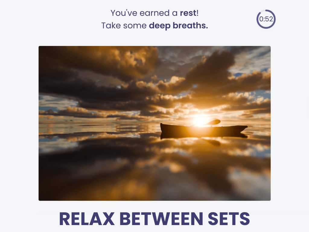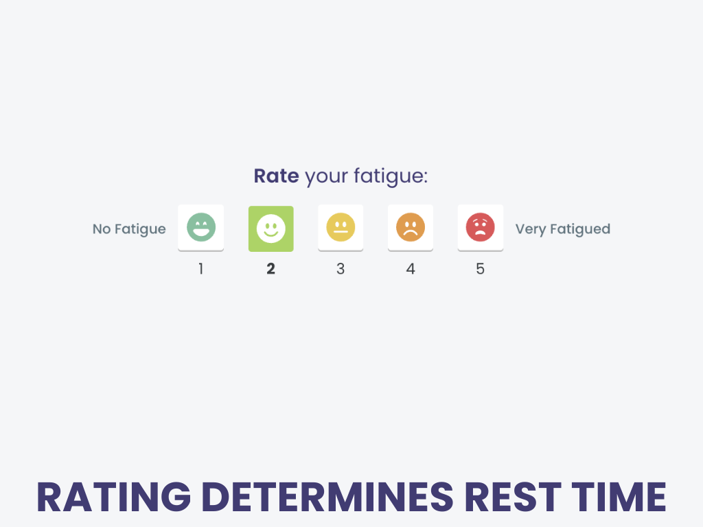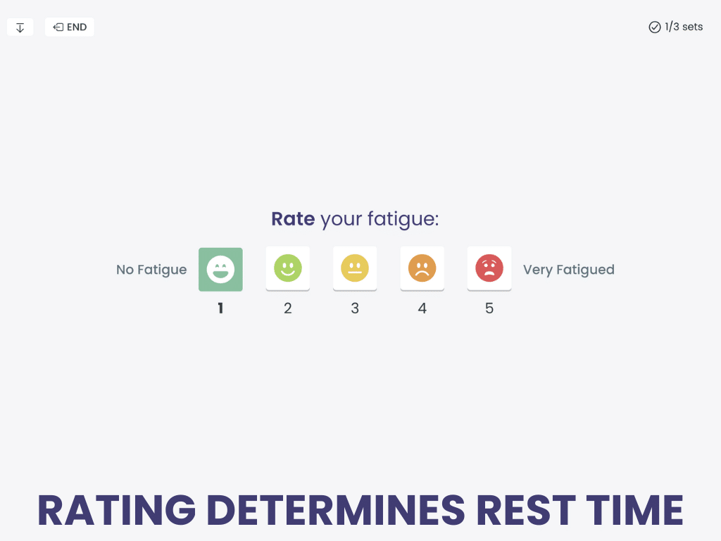 Effortful Swallow guides patients through their sets of repeated exercises with feedback based on self-ratings.