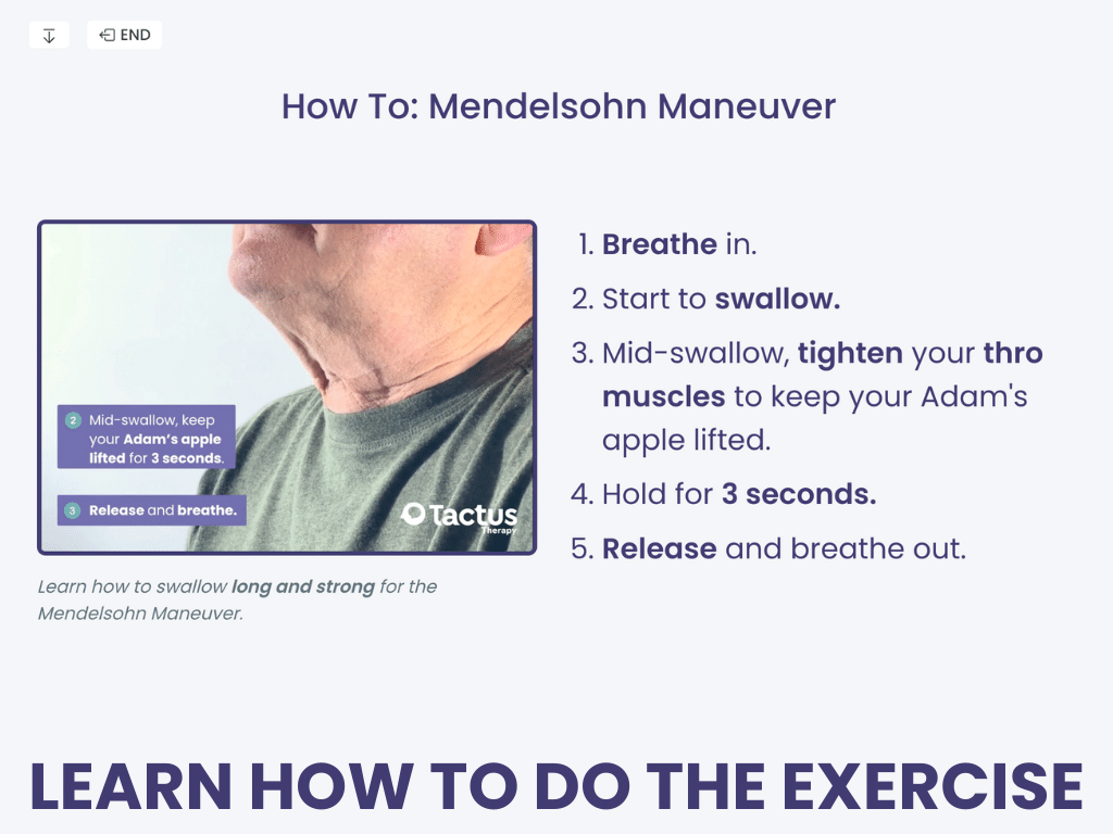 Mendelsohn Maneuver is an evidence-based dysphagia treatment in the Virtual Rehab Center to strengthen the muscles of swallowing.