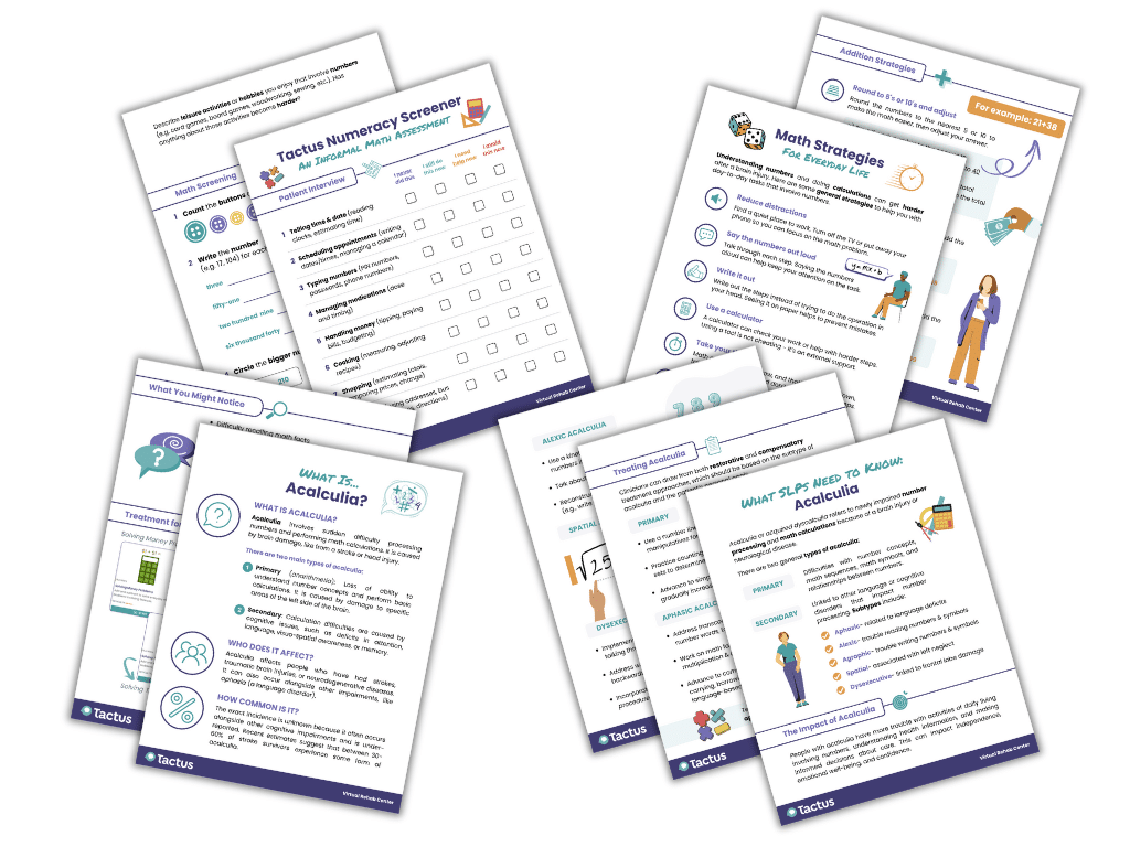 Finally, it’s important to ask patients how they used math in their daily lives before their brain injury and how those abilities have changed since. Understanding math use helps clinicians see the real-world impact of acalculia and prioritize meaningful, functional goals.